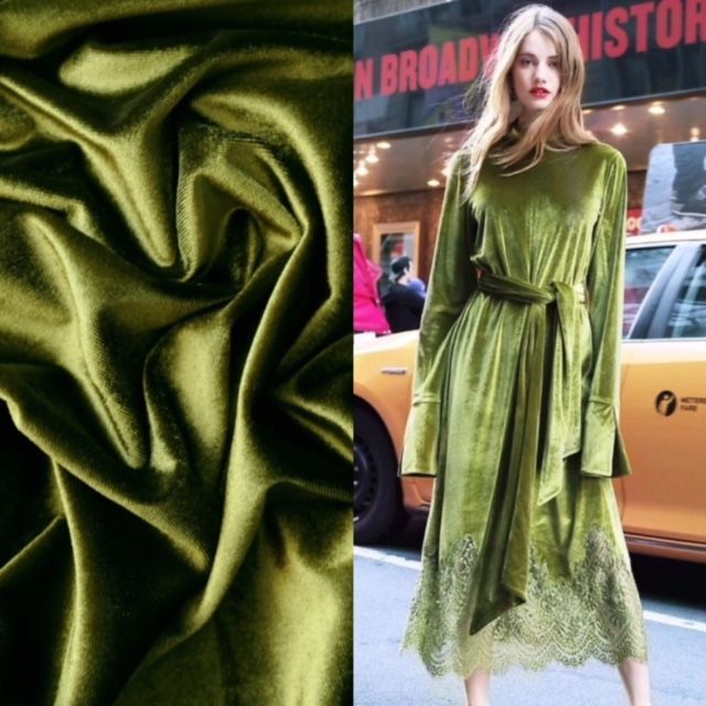 Артикул: 0618/84Производитель: ИталияБренд: Alberta FerrettiСостав: Вискоза 50%, шелк 50%Ширина: 1.35 м.Описание:Фантастический, как масло, с дорогим отливом однотонный плательный вискозно-шелковый бархат болотного цвета Alberta Ferretti. Ткань очень пластичная. Невероятно красивая. Шейте бархатные вечерние платья, платья-халаты, бархатные рубашки и юбки, а также стильные бомберы.